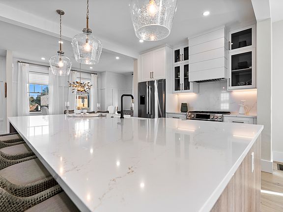 - AC, OSh, Floor 1: Spacious Chef's Kitchen with quartz kitchen island, quartz backsplash and under cabinet lighting, Dining Room, Living Room, Mud Room, 5 1/2" White Oak Floors, Tile in the bathroom, 9' ceilings, fireplace, detailed moldings., Floor 2: Primary Bedroom with large walk-in closet and ensuite bathroom. Plus 2 additional bedrooms, a full bath and large laundry room. 5 1/2 White Oak Floors, Tile in bathrooms and laundry room.
