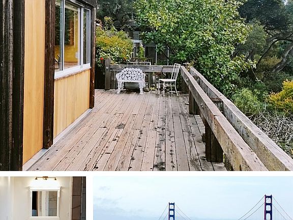 Secluded quiet studio apartment with spectacular views of Sausalito Bay and Golden Gate Bridge. One person 1Bath cottage separate from main house. All newly remodeled with full kitchen including refrigerator, gas stove, dishwasher, microwave, butcher-block bar seating. Beautiful tiled bath with walk-in shower, clothes washer and dryer. 450 sq ft. Furnished or unfurnished your choice Owner pays all utilities No Smoking, no pets, drive way is off steep street