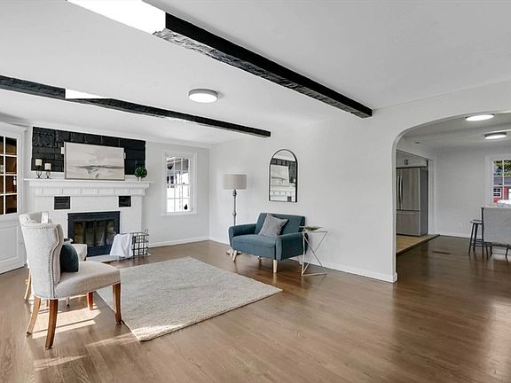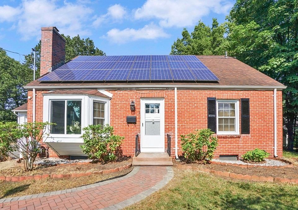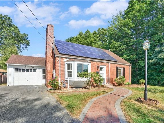 Step inside this beautiful brick cape which has been updated throughout. When you enter you will notice the dark walnut hardwood floors followed by a brick fireplace. Next the open concept kitchen with quartz countertops, stainless steel appliances. Two nice sized bedrooms on the first floor & a modern tiled updated bathroom. Upstairs you have a sitting area leading up to a massive master bedroom. Basement is finished with a full bathroom attached. You will find a tiled sunroom which leads to your fenced in massive backyard. Two sheds are included for extra storage. This property has many fruit trees including apple, peach, & pear trees. Comes with solar panels which have no debt. Come see before it’s gone.