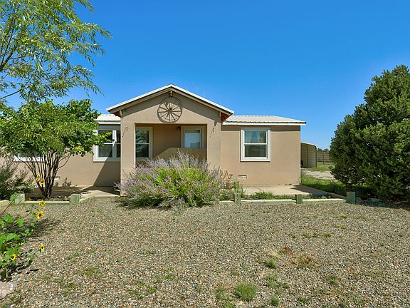 PRICE REDUCED! Country living in this spacious home. 3 bdrms, 2 bths, 2-car carport & insulated strg area. Horse area w/hay storage & tack rm. The big bonus is the1500 sq ft Mueller Red Iron bldg 30x50 heated. There is a spot for your RV, a fenced off area to put your stuff that you want no one to see. Chickens are welcome to roam. 2x6 constr. w/1''outsulation using the Dryvit system.Added layer of foam & synthetic stucco exterior. 1/2mi from Dollar General.10min from groceries, hardware & DMV. 10min to I40, 50 min from Albq., 65min to Santa Fe. Lower Prop taxes,only 200ft of dirt road, Vol Fire Dept 1.5 mi and Beautiful skies for Star Gazing