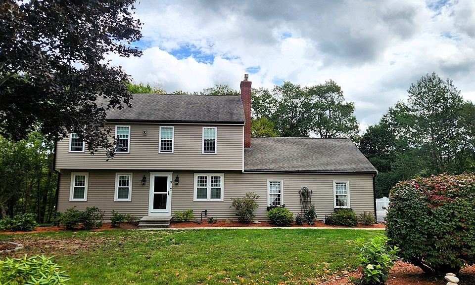 Beautifully updated 3BR Colonial on nearly an acre at end of cul-de-sac in Highland Estates! Shiplap wall on fireplace wall customizes the family room that flows into kitchen featuring rich cherry cabinets, granite counters & stainless appliances. Sunny DR with walk-out bay opens to kitchen, LR and has access to a huge deck, block patio & fenced yard—perfect for entertaining. Upstairs, the vaulted primary suite offers a walk-in closet and private bath, plus 2 more bedrooms and an updated main bath. Need more space? The finished walkout lower level with bar is ready for game nights, workouts, or weekend hangouts. Major updates: roof, windows, A/C, siding, boiler, oil tank, vanities, mini-split & more - all within the past 10 yrs. Solar panels keep electric bills low. Hardwoods in most rooms. Nicely landscaped. Move-in ready and minutes to parks, Hopedale Country Club & commuter routes—This is where lifestyle meets location!