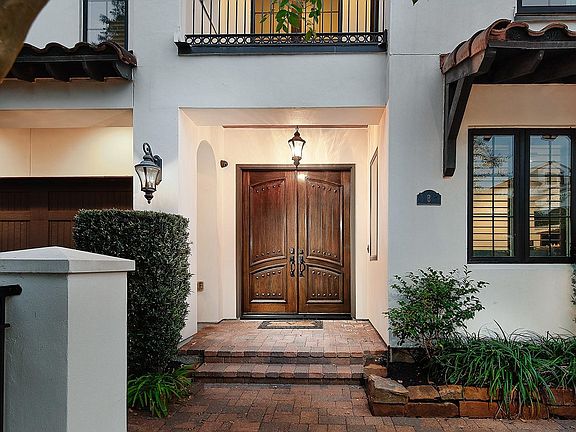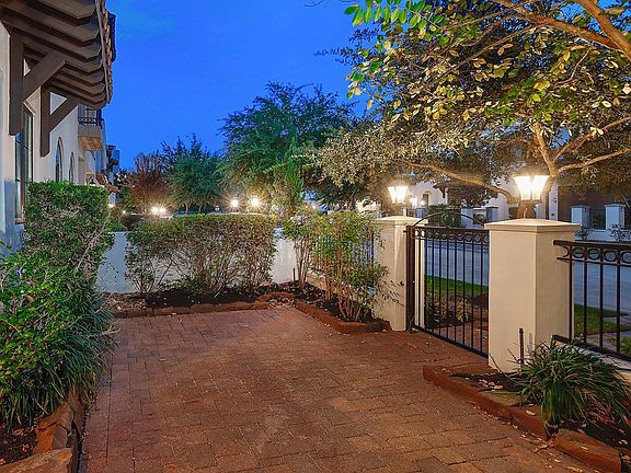 Rare two story townhome with a pool in the gated enclave of Lakeside Cove! A gated courtyard and dual entry doors welcome you inside, where you'll find rich hardwood flooring, a neutral paint palette, plantation shutters, a whole house water filtration system, built-in speakers and stunning finishes. The formal dining is centered by a sparkling chandelier, and offers a wine grotto with wrought iron door, beverage fridge and adjacent butler's pantry. A sleek and functional kitchen with Thermador appliances, including a built-in fridge and gas range with double oven, pot filler and vent hood, breakfast bar and nearby breakfast room. The living area has a gorgeous fireplace and custom built-in cabinetry. The flexible floor plan features 3 bedrooms and 4 full baths, and the study downstairs can be a 4th bedroom/mother-in-law suite. The upstairs game room offers a wet bar. Two car attached garage; fenced yard with Travertine decking, a covered patio, heated pool and spa.