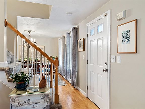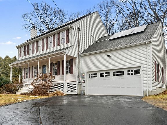 Check out this young Colonial located in a great neighborhood just minutes to 495. The first floor offers an Open Floor Plan with hardwood flooring throughout the main level. The bright Kitchen boasts stainless appliances, a center island and a slider to the expansive back deck. The spacious Dining Room is perfect for hosting holidays & the Living Room features a Fireplace for cozy days at home. Just off the Kitchen is a 1/2 bath with laundry and easy access to the 2 car garage. The 2nd floor offers 3 Bedrooms and 2 full baths. The Primary Bedroom has a private bath, a large walk in closet as well as a 2nd closet for more storage. The finished lower level includes an Exercise Room or Office space. The large Family Room is complete with a Home Theatre Projection System complete with surround sound, great for movies & sports. There is a newer Heat pump for AC & Heat along with Solar Panels which keep energy costs low. This home is a must see. A Quick Closing Is Possible!