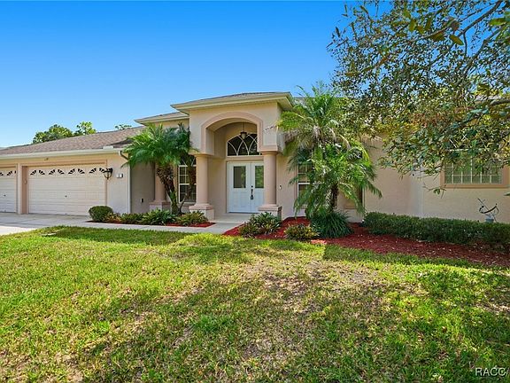 Nestled in the desirable Sugarmill Woods – Cypress Village, this well-maintained 3-bed, 3-bath pool home offers 2,586 sq ft of living space on a 0.30-acre lot. The split, single-level layout features light-filled living areas with pool views, a spacious primary suite with dual walk-ins, a flex room ideal for office or guest use, and an oversized 3-car garage. Enjoy outdoor living with an extended screened lanai, sparkling pool, and outdoor shower—perfect for gatherings and Florida sunshine. Peaceful setting with mature landscaping, close to both saltwater and freshwater recreation, including fishing, boating, and kayaking. Conveniently located less than an hour from Tampa International Airport and about 1.5 hours to Orlando, offering the ideal blend of relaxation and accessibility.