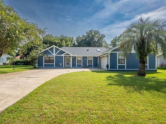 Welcome home to Indian Trails East one of the very few Palm Coast neighborhoods that is walking distance to stores and restaurants! The lovely 3 bedroom 2 bath home on an oversized lot offers a side entry garage volume ceilings, a wood burning fireplace, huge Florida Room. Light and bright with plenty of skylights, LVP flooring through out, formal dining, large living room and cabinet packed kitchen with center island and newer stainless steel appliances. Ample sized guest bedrooms and bath in this split floor plan offer guests privacy, primary bedroom with large walk in closet and en-suite bath. Off off the large Florida room great for entertaining you will find a covered lanai and grilling area, screen inground pool and new outdoor fire pit patio in a fully fenced in yard. Centrally located to schools, shopping and I95 yet tucked away in a lovely neighborhood surrounded by fresh water canals. Roof 2021, Hot Water Heater 2023, HVAC 2024, Firepit patio 2024, Gutters 2024, Exterior Paint 2023