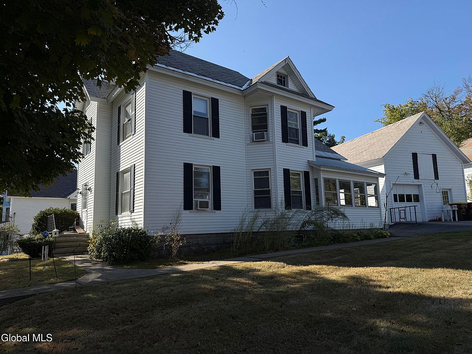 Located in the historic Village of Granville, New York is this 1,883 sq foot, two story home located on a corner lot with detached garage. Step inside from the enclosed porch to a warm and inviting layout featuring a very large living room , a renovated kitchen with some newer appliances, a charming dining room with new light fixture, a half bath and a first floor bedroom currently being used as a office/den. The upper level consists of 4 bedrooms and an updated large bath. A great lot with mature trees and the patio located between the house and garage gives you privacy. Many upgrades including electrical in the last few years. A Great home welcoming everyone.