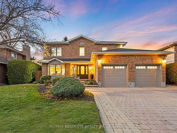 NO rear neighbours & backs onto a WALKING trail! An exceptional location within Amberwood that is a STUNNING mature community steps to walking paths, ponds, beautiful scenery & the Amberwood Village Golf Course that offers an excellent recreational lifestyle with tons of different activities for the whole family to enjoy! This SOLID Iber CLASSIC home has been so well loved by 2 long time owners, is on a 60 foot lot (front), FULL brick surround, the entire driveway & walkway to the home is interlocked and it is in PRISTINE condition, NEW roof 2022 & insulated garage doors that just to add to the GORGEOUS curb appeal. The backyard offers an English garden that comes from years of nurturing, the perfect towering cedars provide an abundance of privacy ALL year round! Spacious tiled open foyer. This home has a formal living room with a bay window & the formal dining room window overlooks the backyard & offers easy access to the kitchen! ALL NEW appliances, granite countertop, marble backsplash, lots of antique white custom cabinetry, loads of pots & pan drawers- there is so much detail in this kitchen.. it's a MUST see! The breakfast area is surrounded by windows, an absolutely STUNNING room! In the family room you will find a WETT certified WOOD burning fireplace, wainscoting, French doors & new patio doors that lead to the back garden! The main level has a OVERSIZED mudroom/ laundry room! Hardwood stairs with white risers guide you to the 2nd level! The 5 piece ensuite has a claw foot tub, a new vanity with dual sinks & separate shower! 3 additional good size bedrooms that all have custom closet organizers! In the FULLY finished lower level you will find a good size rec room, 2 piece bath, LEGAL 5th bedroom & games room plus an ample amount of storage! Most windows replaced, Roof 2022, furnace & AC 2012 INCREDIBLE landscaping & patio in the North West facing backyard.