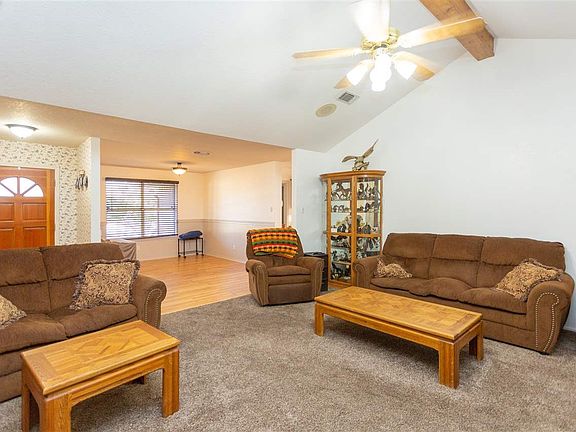 Cozy home on a low traffic street. Vaulted ceilings in largeLRw/a beautiful brick, wood-burning fireplace. New flooring, thick carpet, paint, wainscoting, & wood kitchen cabinets. Has formal dining area & breakfast nook. Kitchen has stainless steel kitchen appliances, washer & dryer stays. Large master bedroom, full bath, & his and hers walk-in closet. HIS (10X10) & HERS (10X12) detached storage shed PLUS a 50X30 insulated shop with additional concrete slab for parking. Easy to show - 2 HRS. Notice.