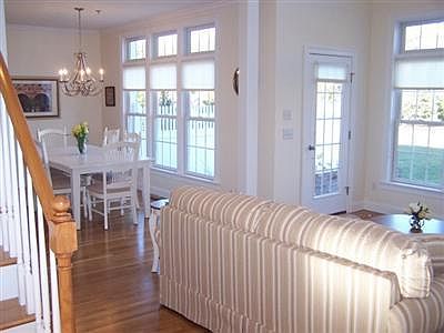 This beautiful new Chatham town home is convenient to restaurants, shopping, ocean beaches and town AND includes pool and tennis! Light & bright 1st and 2nd floor master BR suites, a loft for overflow guests, and a bonus room that can be finished. Two and one-half baths. Soaring cathedral ceilings & gleaming oak floors. Lovely granite kitchen w/breakfast bar opens to the dining room. Adjacent living room w/gas fireplace & built-ins. Central A/C, natural gas heat, washer/dryer, attached garage, plus a full basement that can also be finished. French doors lead to your own patio and a nice back yard. Ideal rental investment, rents for $2,850/week! Pets up to 75 lbs allowed too. Close to everything, yet a peaceful Chatham retreat. Move in and enjoy Summer 2009 in Chatham!