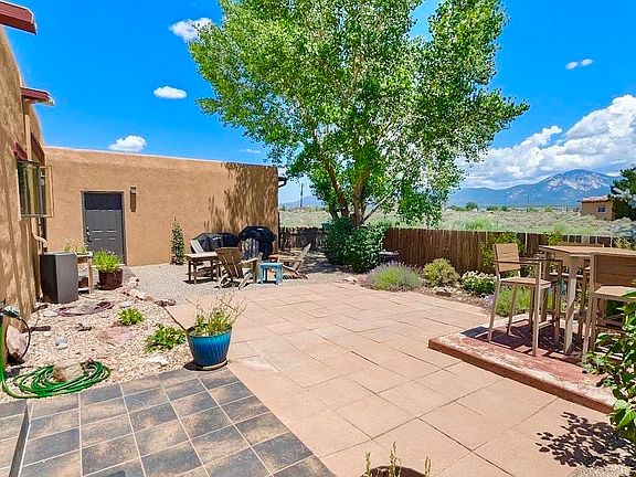 This beautifully maintained Pueblo-style home, constructed in 2006, offers breathtaking views, convenient access to Taos’s renowned amenities, and a short drive to their attractions. Schedule a viewing appointment today to experience this four-bedroom, two-bathroom sanctuary nestled in the heart of Northern New Mexico. Spanning 2,224 square feet, with a 2-car attached garage, this home sits on a one-acre landscaped property that boasts a meticulously designed interior with tile and pergo style flooring, granite countertops, stainless steel appliances, and elegant decor. The open floor plan is well designed and is perfect for day to day living or for entertaining. The master suite is spacious and features a walk-in closet and master bathroom with a jetted tub and walk-in shower. The spacious outdoor living area is further enhanced by mature trees, a patio, a covered porch, and panoramic views of the majestic Sangre de Cristo mountains. Strategically located, the home is approximately 10 minutes from the Town of Taos, 25 minutes from the Taos Ski Valley, 9 minutes from the Rio Grande Gorge Bridge, and 5 minutes from the Taos Regional Airport, this home provides unparalleled convenience for those seeking a Northern New Mexico lifestyle. Please reach out if you would like to see this home in person.