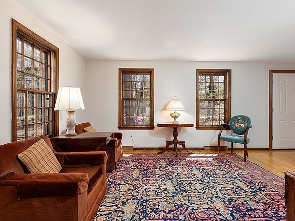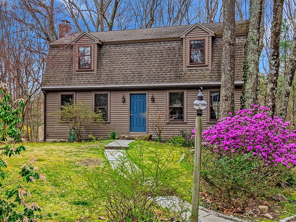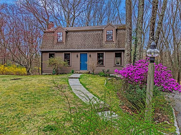 This charming Cape style home offers a cozy retreat with its inviting fireplace in the family room, perfect for relaxing evenings. Spacious living room and functional eat-in kitchen connecting to a formal dining room, create an ideal layout for both daily living and entertaining. Upstairs, three generously sized bedrooms, including a large front-to-back primary, are accompanied by a full bath. Freshly painted interior. Hardwood flooring found throughout most of the home. The partially finished walkout basement provides additional flexible space, whether for an office or playroom, while ample storage ensures organizational ease. Outside, the deck overlooks the private wooded backyard. This home presents an incredible opportunity to own in desirable Medway - known for its award-winning schools, numerous walking trails/parks, great commuter access, and abundant community amenities!