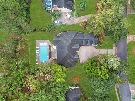 If you've been looking for a beautiful tropical paradise, look no further! Captivating all brick executive home boasting a 3 car side entry garage, split floor plan w master on the main and huge 4th bedroom w full bath upstairs. You won't ever want to leave your backyard - enjoy the concrete saltwater pool w diving board, soaking deck and paver patio surround, all overlooking the golf course. Brand new roof is on the way! Hardwood floors, high ceilings, big crown moldings, new bedroom carpet, plantation shutters, new Hvac ductwork and architectural design galore! Granite counters, custom cabinetry, stainless appliances & Tons of storage w a walk-in attic and Fenced in yard too. You can't miss it, just look for the luscious mature landscape that surrounds this beautifully updated Southbridge home.
