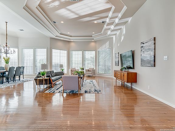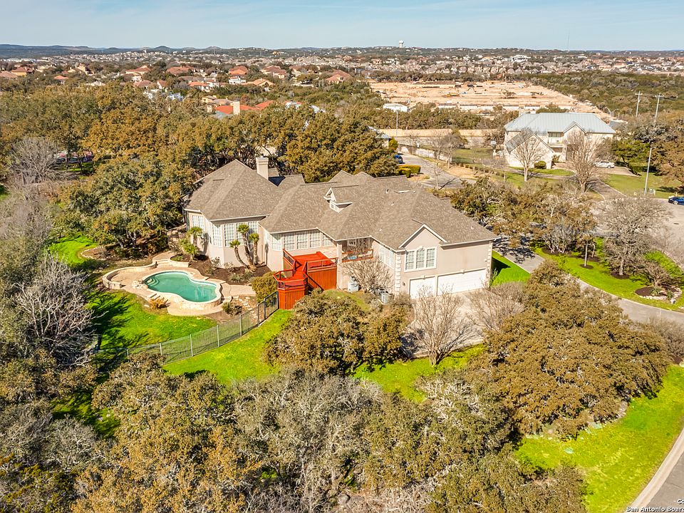 Perched on a sprawling .93-acre cul-de-sac lot in the prestigious Champions Run community, this remarkable home offers a commanding presence, complete with 24-hour security guard-gated access. Situated at one of the neighborhood's highest points, it boasts stunning views and unrivaled privacy.Upon entering, the open floor plan welcomes you with an abundance of windows, bathing the interior in natural light. With four distinct living areas thoughtfully placed around five bedrooms, this home caters effortlessly to both large gatherings and intimate retreats. High ceilings, generously sized rooms, and a dedicated Master Suite Wing with ample storage enhance its allure. The mother-in-law suite even includes a separate laundry area, making multi-generational living a breeze.The majority of primary living spaces are conveniently located on the main floor, ensuring ease of access. A single spacious bedroom and bathroom are thoughtfully positioned on the upper level, providing flexibility and separation. Interior steps lead to the lower level, featuring an oversized three-car garage with extra storage space.This residence enjoys an enviable location within the highly regarded NEISD school district. Experience a lifestyle that combines security, luxury, and space in this exceptional property, where comfort and prestige unite. ***Located less than 1 mile to Top rated Canyon Springs Golf course and 10 mins away from 3 other courses***