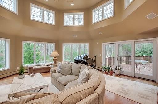 Absolutely stunning, designed with distinction and constructed with quality, Contemporary 4/5 Bedroom home is your secret oasis. 2.7+ acres with complete privacy, adjacent to Boxford trails & to complete the picture-perfect location sited directly on Lowe Pond. Amazing soaring ceilings with windows & skylights take advantage of the spectacular surroundings. Cozy FR w/wall of custom built-ins, gas FP opens to large EIK with 6 burner Viking, double ovens & more, all with exterior access to deck. Gracious formal LR and DR with private office. The breathtaking Bonus Room is your happy Place surrounded by floor to ceiling windows, wet bar, FP, cathedral ceiling, access to deck & patio. WOW! Master Ste, 2 walk-in closets, tray ceiling w/private bath. 2nd fl includes 3 generous bedrooms w/family bath. LL is perfect for extended family, guests, in-law potential, or playroom with full bath, kitchenette area, separate bedroom & best of all: walk-out with private entrance. Perfection Plus!