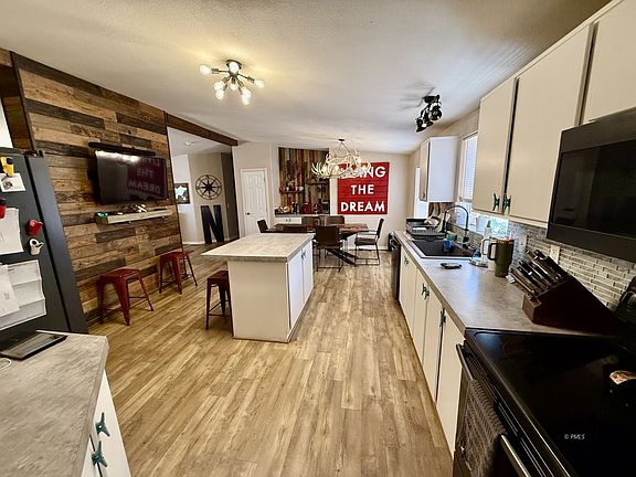 5 BEDROOM - 2 BATH MANUFACTURED HOME-Full Remodel. This home has 1960 square feet of living space consisting of 2 family rooms, kitchen/dining room combination, 5 bedrooms and 2 bathrooms...NICELY REMODELED. Painted throughout, new laminiate wood plank flooring and trim, distressed wood wall features and beams. Kitchen has new counter tops and backsplash as well as matching GE appliances. Cabinets are all painted with new hardware. New light fixtures in most rooms, guest bathroom has had a full remodel. Lots of room to this home and would accomodate a large family or be great for a VRBO! Gym equipment will be included with a full price offer! Attached two car garage and yard is fully fenced. Call today for a walk through on this home.