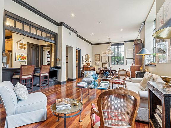 Chic, desirable 3 Chisolm residence just steps away from the Battery and perfectly located South of Broad. This sophisticated space is within the acclaimed Neoclassic building designed by David B Hyer in 1923, commissioned by businessman/philanthropist Andrew Murray to serve as a school. This rare, hard to find 3BD, 3BA single-level floorplan features the grandest scale, tallest ceilings, and oversized windows not found in other condominiums in town. With the feel of a New York style loft, this residence is perfect for entertaining with its ballroom-sized living room (15x36) and circular flow from living to kitchen to bar. Very attractive separate guest wing for privacy, plus easy access to the private rear courtyard when entertaining, offering views of the fountain from the living room.