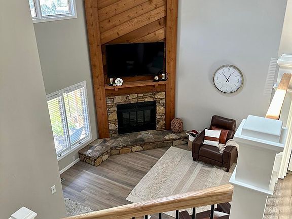 Check out this spacious, newly remodeled condo on Jasper's west side with tons to offer! Recent updates include 2021-22 flooring, countertops, stairs/railing, kitchen appliances, tiled shower, vanity, and lighting. All with maintenance-free living. The majestic two story great room is highlighted by a gorgeous stone fireplace with high, beam ceilings and skylights; allowing for massive amounts of natural light. The kitchen comes fully equipped with like new stainless steel appliances, sleek solid surface tops, and an island. The main level includes a bedroom and full bathroom, while upstairs you will find two more bedrooms, one of which has a large walk-in closet, and another full bathroom. This condo also has a full basement! Monthly association fee is $175