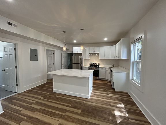 Recently renovated first floor three bedroom unit available for 10/15 move in. Brand new appliances with a spacious open kitchen floor plan. (1) garage space and (1) driveway parking space included. Shared laundry room in the basement. Pet friendly!
