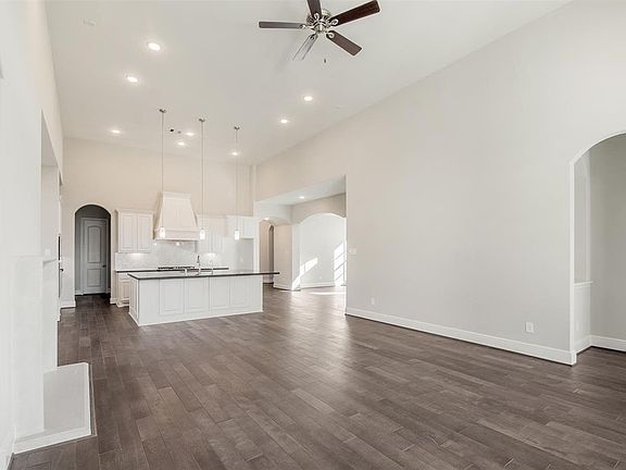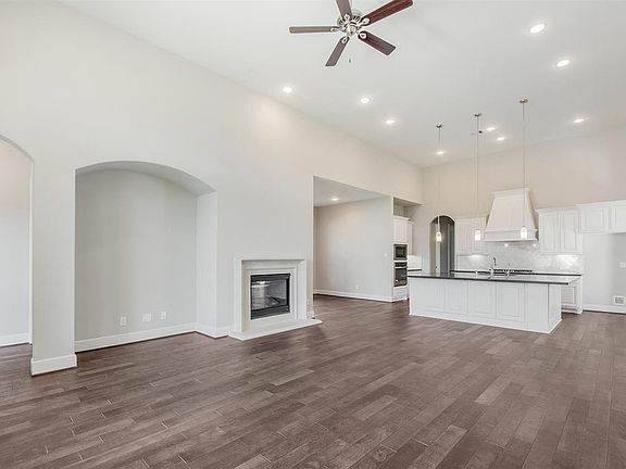 Enjoy the privacy of a corner lot in this exquisite one-story Tudor home, complete with luxurious upgraded interiors. The entry is flanked by a study that is complemented by beveled glass French doors and beams on the ceiling. Continuing into the foyer is a rotunda that leads you to secondary bedrooms, complete with en-suite baths and a powder bath located off the front hallway. As you proceed into the main area of the home, you will immediately notice the high ceilings spanning from the family room to the kitchen. The oversized island is a cooks dream. With both the breakfast and dining room located off the kitchen, this is the perfect space for entertaining. The master suite is privately located off the back of the home, enhanced by a spa-like retreat. Also featured in this lovely home, a game room provides the ideal space for the kids to stay entertained. Highlighting the main living areas are beautiful hardwood floors. Private baths in the secondary bedrooms make this the perfect home for guests. Dining Al Fresco is easy with the covered back patio privately tucked away, along with plumbing for a future outdoor kitchen.