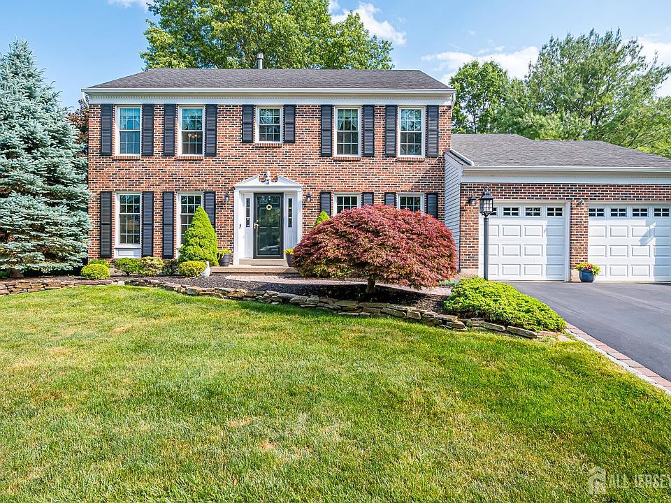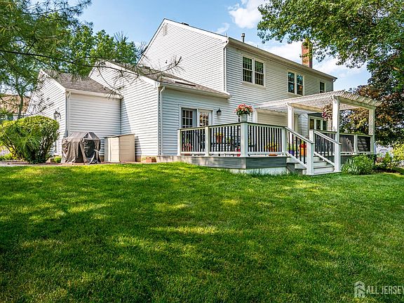Showings Begin Thursday 10/9/25: Welcome to this Immaculate and Upgraded Vernon Colonial Model home situated in a Premium Location within the highly Desirable Timber Ponds Community! This North facing, Brick Front Colonial is surrounded on two sides by Open Space, with Woods and Stream on a quiet Cul-de-sac. As you enter into the Welcoming Foyer, you're enveloped by a gracious floor plan featuring a formal Living Room and Dining Room with Hardwood Floors and Crown molding. The Wood Floors continue into the Spacious Family Room centered around a cozy Gas-Burning Brick Wall Fireplace. The Upgraded Kitchen will be a delight to entertain in, with 42 Cabinets, Pantry, Granite Countertops, Tile Backsplash, Recessed Lighting, Stainless Steel appliances, and a Separate Sunken Eating Area with Skylight. The Entertaining Space continues as you step out the set of French Doors onto your Trex deck with Pergola overlooking the Expansive and Private Yard. Back inside and upstairs, the Primary Suite offers a Gorgeous, En-Suite Bathroom with Enlarged Shower, Marble Countertops and Abundant Storage, an adjoining Sitting Area, and Walk-In Closet. 3 very nice sized Bedrooms and a Full Bath complete the Second Floor. The Basement is Fully Finished and offers yet more Living and Storage space. Additional Updates Include: replaced Tilt-in Windows throughout, Paver Walks and more! Located in the top-rated South Brunswick school district, this home offers Exceptional Living with easy access to schools, parks, and major commuter routes.