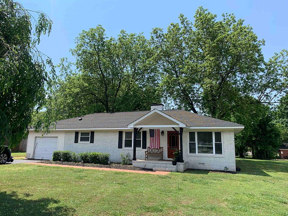 Beautiful all brick home, very conveniently located! Close to shopping, restaurants and highway. Recently updated roof, electrical, plumbing, vinyl plank flooring with lifetime warranty throughout the home, bright white kitchen cabinets with soft close doors, granite countertops.. This home features a nice brick fireplace in open living room. Third room could be used as a bedroom, office or flex room with barn doors. Laundry room doubles as a bathroom with tiled shower. The list goes on! Long-paved driveway, cozy backyard with patio and mature trees for shade.