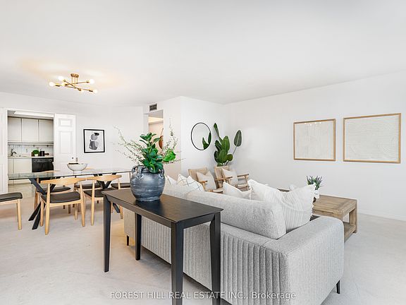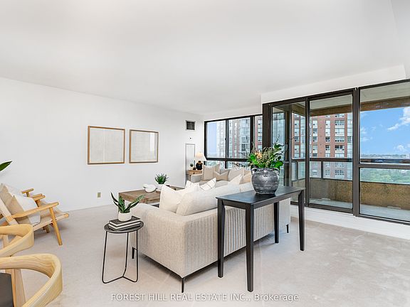 Located on the 20th floor of a quiet, well-managed building, this beautiful 2-bedroom, 2-bathroom condo offers panoramic views of the surrounding area. The spacious eat-in kitchen is perfect for casual dining, while the open concept living area allows for easy entertaining.This sought-after building offers resort-like amenities, including 24/7 gatehouse security, an indoor pool, gym, tennis and squash courts, sauna, and party room - everything you need to live in comfort and style. All utilities, including cable TV, & WIFI are included in the maintenance fee. One parking space and an ensuite-locker.Enjoy the tranquility of lush gardens and ravine trails right outside your door, or take a short stroll to the nearby Aga Khan Museum. Commuters will appreciate the quick access to the DVP and the TTC at your doorstep, with the future Eglinton LRT just a short walk away. You'll also find a plaza across the road with a Tim Hortons and grocery store, a quick drive to Superstore, and the Shops at Don Mills, which offers excellent dining, shopping, and grocery options. Dishwasher in 'as is condition'. Don't miss out on this rare chance to experience exceptional living in one of Toronto's most coveted condominium communities.