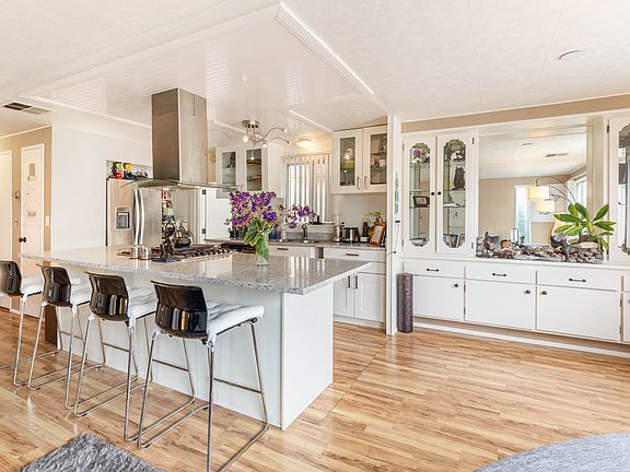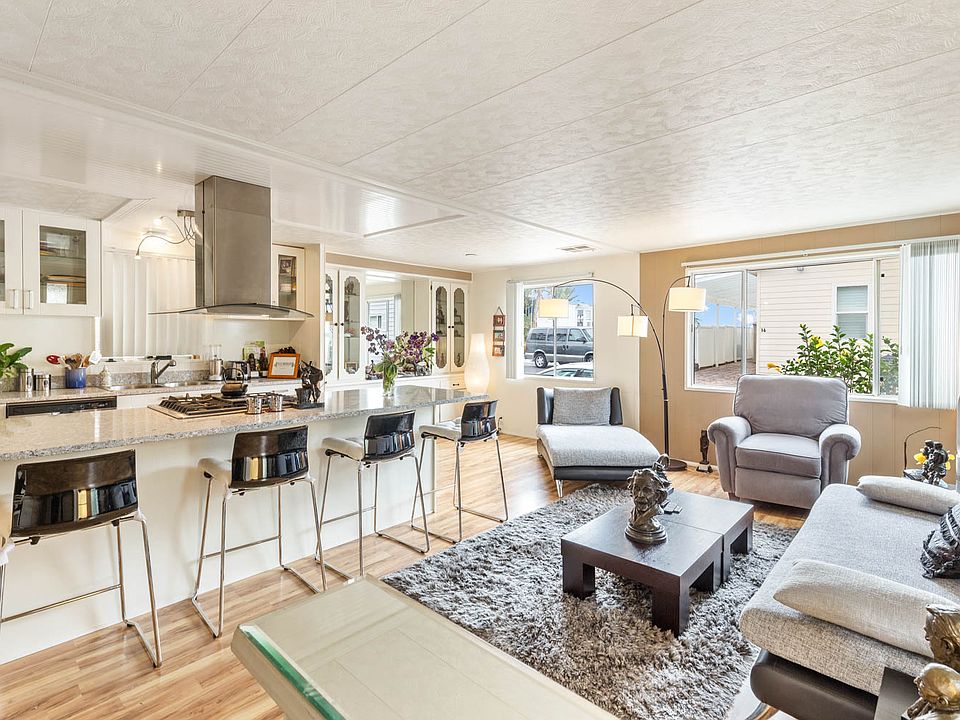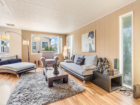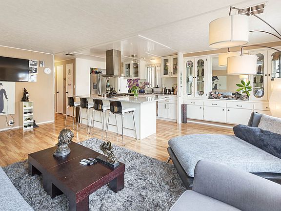 Amazing designer done 2 BR and 2 BA home in desirable Tahitian Terrace, across from world famous Will Roger's beach in Pacific Palisades! Large open concept floor plan with tremendous light throughout. Redone gourmet kitchen with multipurpose oversized Corian counters, custom cabinetry, stainless steel appliances and center island w/ breakfast bar that opens to a large living and dining area perfect for entertaining. Also features highend laminate flooring, large bedrooms, lots of windows and closets, updated bathroom, custom built ins, laundry in unit, storage shed, 2 car parking and more! Tahitian Terrace-amenities featuring a heated pool, hot tub, gym, guest parking and a clubhouse with ping pong and billiards. You do not own the land and the space rent is approximately $1,183 per month which is protected under rent control. Owner does not pay homeowner's fees or any property taxes. Great opportunity to live next to the beach at an amazing value!