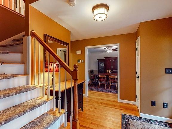 This stunning colonial has everything you've been looking for: a dream commuter location, the welcoming farmers porch, wide entry foyer, the updated kitchen w/white custom cabinetry, granite center isle & counters, high-end SS applnces, the huge great room w/granite surround gas fp, cathedral ceilings and sliders to the back deck, hardwood throughout the whole home, the formal DR w/chair rail & crown molding , the must-have home office, formal living room & convenient powder & laundry room. Upstairs has the stately mstr suite w/walk-in closet & full bath, 3 additional guest bedrooms and full guest bath. The basement, although not heated, has been partially finished with knotty pine wood and makes a great gym/studio/craft room. Enjoy the built in firepit in the private, professionally landscaped yard. Exterior painted (2017), roof (2016), all trim/peaks/lattice upgraded to Azek (2016), furnace & A/C compressor (2006), radon mitigation, deck stained (2019). Just move in & enjoy!