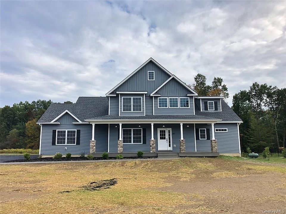 Brand new construction on 5.4 private acres with stone walls and fruit trees. The THISTLE style colonial features 4 bedrooms & 2.5 baths. 1st level offers open great room with hardwood floors & fireplace, formal dining room & custom kitchen with breakfast peninsula, granite counter tops, tiled back splash & S/S appliances. The master suite also on the first floor features tray ceilings, walk in closet, private bath w/double vanity, tiled shower and soaking tub. Full basement & 2 car garage. Pine Bush School District.
