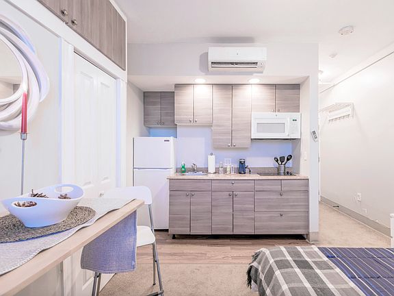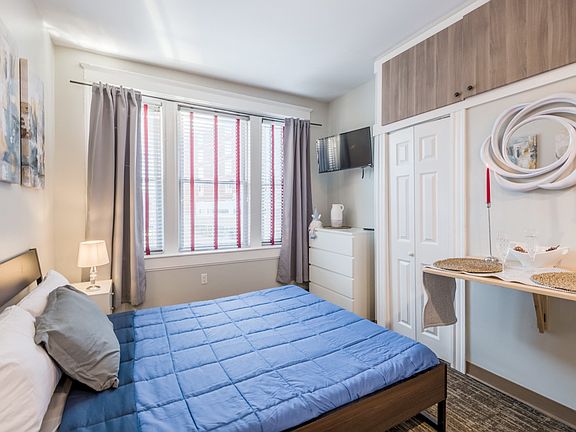 This 181 sq. ft. fully furnished studio is located in the heart of Quincy, just a 7-minute walk from the Subway station and close to restaurants and historic landmarks. The apartment features a cozy living area, modern kitchenette, and a stylish bathroom with subway tiles. Perfect for those seeking comfort and convenience in a prime location. Covered gated garage parking is availbale for additional $175 a month. Water, sewer, thrash removal, wifi and gas are included into rent. Tenants are in chanrge of electricity bills only. Coin laundry facility is available on the first floor of the building.