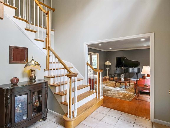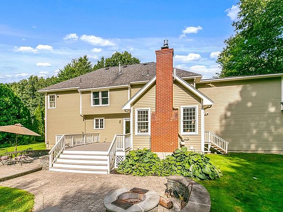Custom built by George Harrington, this home features a 2 story balconied foyer as you enter and are greeted by the main staircase. Spacious rooms with an air of comfortable living from the formal living and dining rooms with crown moldings to the family room with a cathedral ceiling, skylights and accented with a brick gas fired fireplace. A cabinet filled kitchen with a center island also features a breakfast area with sliding glass doors to the rear oversized deck that steps down to the patio with a firepit and seating area. The first floor office is ideal as a bedroom if needed. Generous size bedrooms on the second level plus a 26' great room perfect for a studio, home office, exercise area or bedroom. The primary bedroom with a walk in closet and private bath that features a walk in shower plus a large soaking tub. The finished lower level adds about 900 sf. of living space perfect for a game area with the convenience of a 1/2 bath. Easy access location to I-290 & route 14
