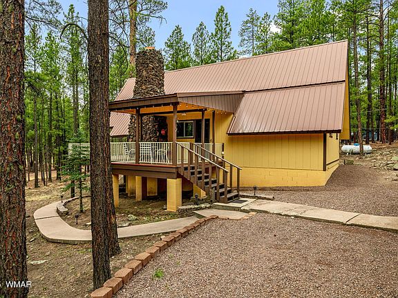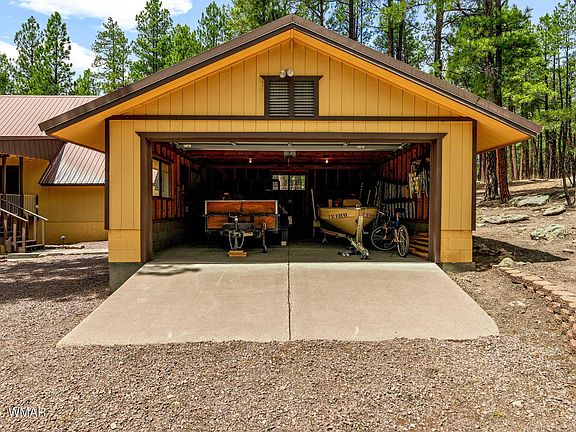 Discover serenity in this enchanting cabin, tucked away amidst the tall Ponderosa Pines. This delightful home offers 1,242 square feet of comfort and charm, featuring 3 bedrooms and 2 bathrooms, fully furnished as is at no added value. Ideal for both relaxation and entertaining whether you choose to sit by the cozy fireplace on a chilly night or in the screened in porch throughout the summer, this home invites you to savor the tranquil surroundings and fresh mountain air. This charming cabin seamlessly blends rustic allure with modern amenities, offering the perfect balance of solitude and accessibility. The property includes a detached 2-car garage for conveniently securing your vehicles or mountain toys and very useful for year-round storage. Property includes a 320 sq. ft. unfinished basement, with all duct work in place, ready to be finished. Use your imagination for a family room, game room, extra bedroom; the possibilities abound.