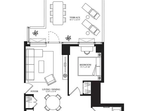 The closet meets your storage space needs. The open kitchen is clean, modern details include a quartz slab countertop and backsplash, stainless steel appliances, and a suite of Bosch kitchen equipment.