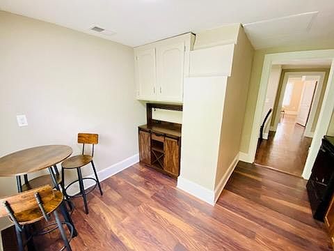 Fully furnished second floor apartment minutes from downtown Greenville. It has a large backyard and carport parking with a long driveway. The apartment contains a refrigerator, stovetop/oven, microwave, coffee maker, toaster oven, and portable dishwasher appliances. The basement contains a washer and dryer and is accessible via an external door.
