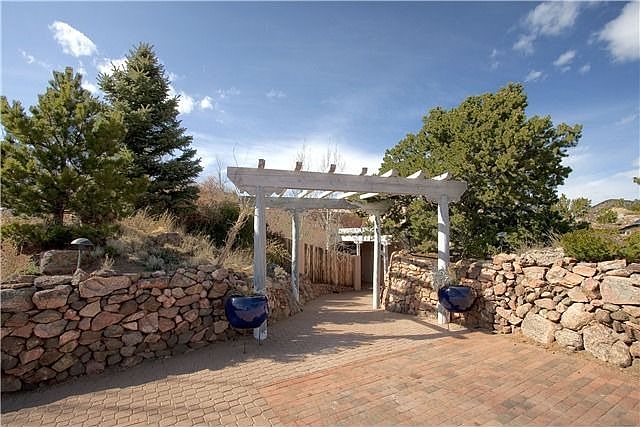 The Cote d'Azur meets Santa Fe. Dramatic views and elegant European touches make this home a delightful place to live and entertain. The exquisite 900 sq.ft. solarium with 30' foot long heated lap pool brings the tropics inside. The expansive one-level living space offers high beamed ceilings, Sierra pine floors and a serene master suite with its own private garden. A home office/study, two guest bedrooms, bath and kitchenette could be separated into a guest suite with private entrance. A gated entrance, paved drive and easy access from Old Santa Fe Trail complete this lovely residence.