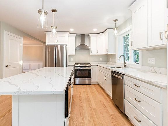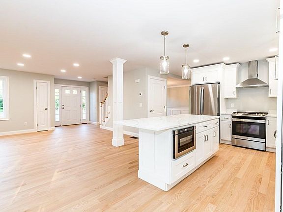 OFFERS DUE 8/2 BY 4PM**Fall in love the moment you walk in with the spacious open floor plan, beautiful hardwood flooring throughout and custom decorative columns. Feast your eyes on the gorgeous kitchen offering modern quartz countertops, stainless steel appliances, and an eat in area with slider to back deck. Host get togethers in the formal dining room featuring custom trim work as well as a pantry closet. Enjoy movie nights in your very own expansive bonus family room. Wrapping up the main level is a half bath with granite countertops & an attached laundry room. Second floor consists of five bedrooms which includes a master suite featuring a large walk in closet and a stunning master bath with modern shower and quartz countertop! The other three bedrooms are great for any size family and all include hardwood floors throughout! Property includes two zones of heat and central a/c, two car under garage connected to full walkout basement and this all sits on almost 2 acres of land!