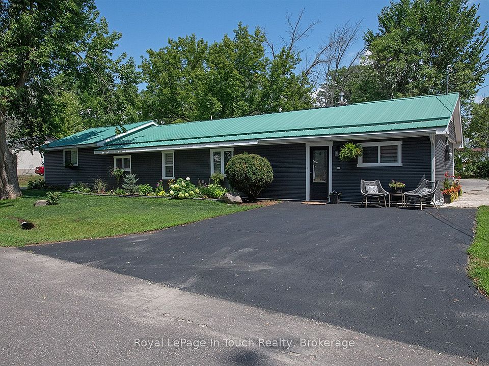 Welcome to this spacious property and home located in a community full of its own heritage and charm. You will love the feeling of the open-concept Kitchen, Dining, and Living Room Areas, All perfect for entertaining or keeping an eye on the kids while meals are prepared. There is a central 3-piece bathroom to these areas as well as a full 4-piece bathroom located within the bedroom area. The Bedrooms are all large and will easily create their own getaway places. The single-floor layout of this home creates an ideal home for retirement or provides an opportunity for families looking to create a separate In-Law Suite. Step outside to your covered porch area, as well as a screened-in porch area. Both overlook the large backyard with tons of room for recreation and play, summer BBQs, and cozy nights around the firepit. This property is unique with two separate detached garages as well as two paved driveways. There is plenty of parking and storage for vehicles, toys, and tools. Located within walking distance to all the best Coldwater has to offer, including the Steampunk Festival, Coldwater Fall Fair, Curling Club, Arena, and part of the Trans Canada Trail spanning over 30 km offering year-round surface for walking, cycling, and cross-country skiing, you will never be short on things to do. Plus, enjoy downhill skiing and golfing just minutes away, and you're only a half-hour north of Barrie! Don't miss this opportunity to own a home that offers space, comfort, and access to a vibrant small-town lifestyle.