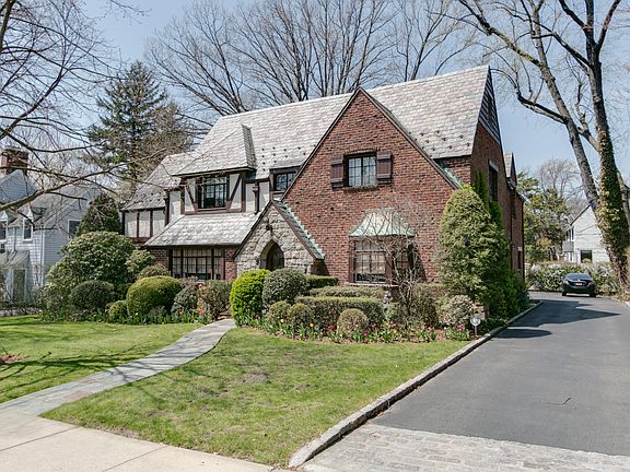 Magnificent brick and stone Tudor With Beautiful Architectural Details Throughout. This house has it all! Entry foyer leading to a large living room with fire place, Den with built-in and access to the back yard. Over sized formal dining room. Oak floors throughout. Eat in kitchen with state of the art appliances, mahogany cabinets and Vermont green marble counter tops. Breakfast Room with sky light and terra-cotta floors. Attached two car garage and a long private drive way. French doors leading to a beautiful deck and a manicured back yard. The top floor has five bedrooms and three Full baths. Finished basement with a gym, family room and a powder room. Russell Gardens Park, Swimming Pool And Tennis. Great Neck south school. Near Everything! A must see