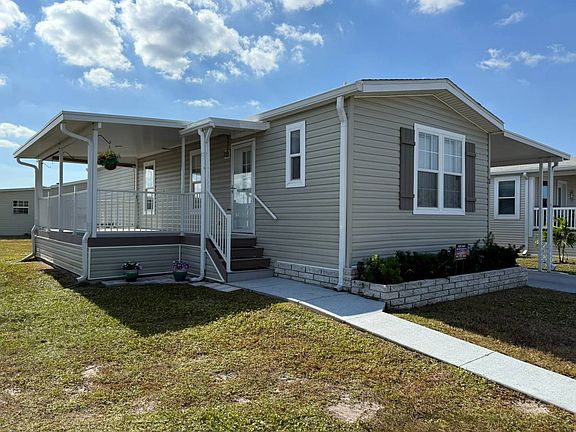 As you pull up to 3 Date Ave, the beautiful curb appeal immediately captures your attention, with clean lines and a welcoming presence that fits perfectly within the peaceful 55+ community of Plantation Village. Stepping inside, you're greeted by an inviting open-concept layout that feels bright, modern, and effortlessly comfortable. The living area flows naturally into the stunning all-white kitchen, where stainless steel appliances, abundant cabinetry, and expansive counter space create a space that is both functional and stylish. The breakfast bar adds a perfect touch, offering a cozy spot for morning coffee, casual meals, or simply enjoying the airy ambiance. Moving through the home, you'll find that every room has been designed with easy living in mind. Ceiling fans throughout keep the Florida breeze moving, while the thoughtful layout makes each space feel welcoming and well-connected. The guest bedroom offers dual closets, providing generous storage and making it ideal for visitors or flexible use. The primary bedroom continues the sense of comfort, giving you a peaceful retreat at the end of the day. As you step outside, the charm continues with a private patio where you can relax, entertain, or simply enjoy the warm Florida weather. The carport adds convenience and protection, and the exterior storage area ensures you have plenty of room for tools, bikes, beach gear, or seasonal items. Altogether, this home blends modern construction, stylish finishes, and effortless livability in a friendly, active community, creating a wonderful place to call home in Bradenton. Terra Palms is a wonderful gated community with numerous amenities; Pickleball, bocci ball, horseshoes, shuffleboard, swimming pool with new spa, new clubhouse, extended covered lounge areas with firepit and a double outdoor built in BBQ area, new fitness center and lush green spaces. There is live entertainment and parties for every occasion. Bradenton and Sarasota offer shopping, dining and centrally located to a number of airports. A must see is the Sarasota Tiger Woods pop stroke and Tampa casino or just search for shark teeth on the beach. The rates include all utilities and amenities such as cable TV, Internet, water, sewer, trash removal, lawn care with the exception of electric service. All listing information given to Our company is considered reliable and appropriate but should be independently verified through personal inspection by qualified professionals. The community office determines the lot rent.