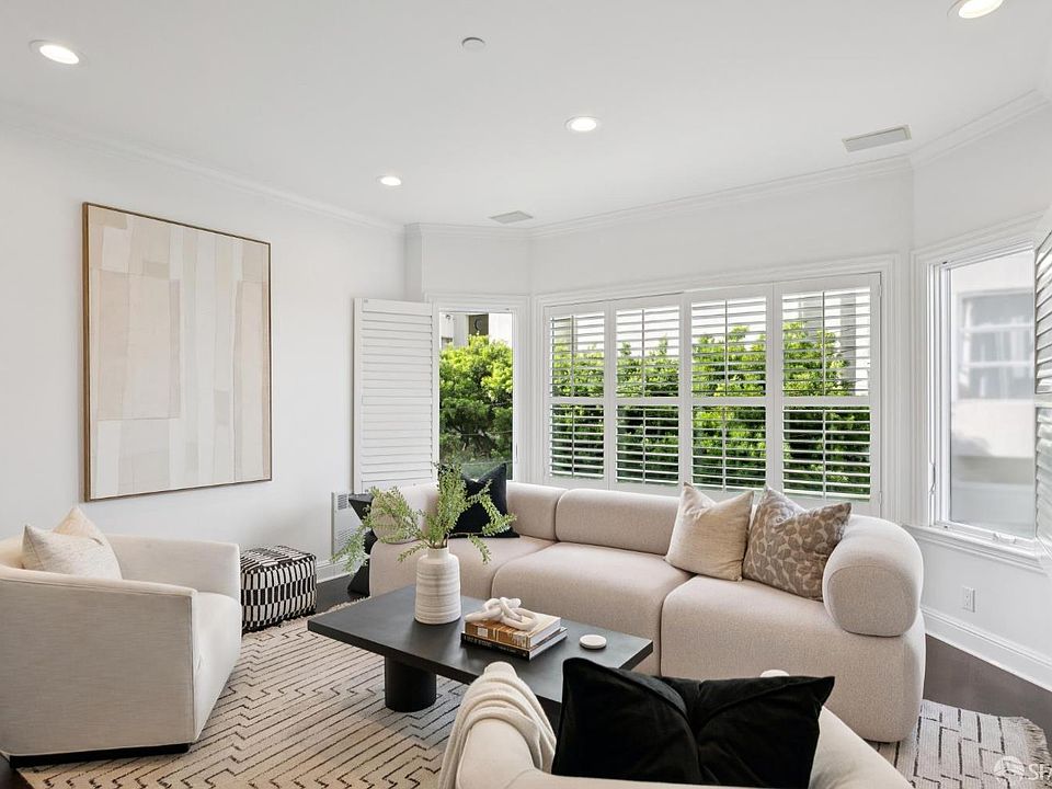 Tucked away on a quiet cul-de-sac on iconic Nob Hill, this rare two level 3-bedroom, 2.5-bath residence offers the perfect blend of contemporary finishes and timeless San Francisco sophistication. One of only two units in a handsome 2001 building, this spacious condominium lives like a private home, complete with elevator access opening directly to both floors. Recently remodeled, the home now showcases rich hardwood flooring and recessed lighting throughout, elevating both comfort and style. The layout is ideal for entertaining, with an elegant, bright living room with gas fireplace, plus a great room with seamless flow into a chef's kitchen equipped with top-of-the-line appliances, including a Wolf gas range, Sub-Zero refrigerator and new quartz countertops. A refreshed powder room rounds out the main level. The private lower-level features three spacious bedrooms with generous closets, including a primary bedroom with dual closets, an ensuite remodeled marbled bath with heated flooring and a walk-out patio. An additional updated hall bath, plus both linen & laundry closets add to the house-like feel. Further highlights include one car side-by-side parking with EV charging, extra storage, and a quintessentially charming & central San Francisco location; 100 walk & rider scores!