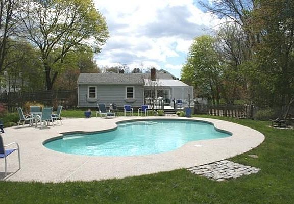 GREAT SUMMER ENTERTAINING HOME!! Deceivingly large and UNIQUE split ranch in a great neighborhood on a quiet cul de sac, close to St. John's Prep. Beautifully updated and fully applianced kitchen has painted cabinetry and granite countertops. 2 updated bathrooms and great lower level, walk out basement family room and office and plenty of storage. HUGE walk in hallway closet storage off of the bedrooms. Large first floor living room has cathedral ceiling, fireplace and built in cabinetry with access to a large deck and a beautiful heated GUNITE pool. Complete with a breezeway set up with storage for your entertaining. LARGE, LEVEL yard with beautiful garden and mature plantings. Storage shed with working electricity and phone hookup.