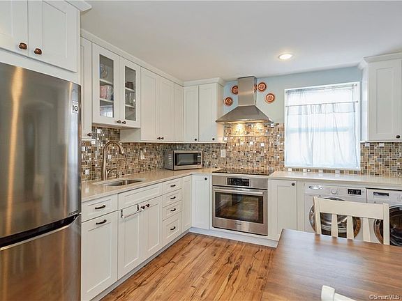 GREAT INVESTMENT OPPORTUNITY OR ALTERNATIVE TO RENT Move right in to this beautifully updated one bedroom condominium. Low taxes, low common charge($150 includes parking, ground maintenance, trash, snow removal, hot water and water make low cost living. Gourmet Kitchen with in-unit washer/dryer, roomy bathroom, master bedroom with lots of closet space. There is a dedicated own storage unit in the shared basement(with additional coin operated washer/dryer. Close to I-95, train, Cove Island Park, Beach, Chelsea Piers and shopping. PET FRIENDLY, only 6 units in the building. New roof in 2019 and all paid. The last 5 photos are before renovation. ***Back on Market 10/1 Buyer did not perform. ***