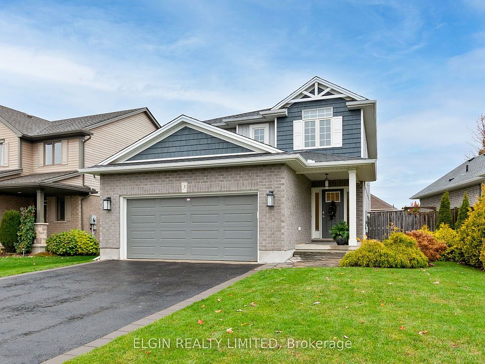 Welcome to 3 Deerfield Court. A quality-built home on a quiet cul-de-sac. This solid two storey boasts over 2400 sq ft of living space with 3+1 bedrooms and 3.5 baths. The main floor has a lovely open-concept layout with hardwood flooring, GCW kitchen, a large island with quartz counters, pantry & gas stove. A large mudroom is located just off the double garage which features an epoxy floor finish. Upstairs offers 3 bedrooms, 2 baths & convenient laundry room. The primary bedroom features a walk-in closet & ensuite with soaker tub & glass shower. The lower level is nicely finished with family room, office/bedroom & 4pc bath. The rear yard is fenced and has a concrete patio and good size shed. This is an excellent area near Dalewood Conservation and close to parks & amenities, 5 min to downtown St Thomas, 20 min to London shopping or short drive to Port Stanley beaches! Quick possession available.
