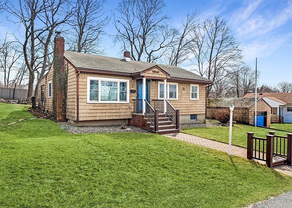 Looking for a serene cul-de-sac and single level living? This 3 bed, 1 bath ranch home is ideally situated close to Tudor Beach, the Town wharf and the library. With 3 generous bedrooms, a living room with wood burning fireplace and a 2nd family room, there is ample space and easy one level living. It is nestled on a 10,000 square foot lot, partially fenced and with a 1 car garage. An outdoor patio off the primary bedroom is a very private backyard. Out of the flood zone and on a quiet street. The basement has high ceilings and an additional 988 square feet, with interior access that could easily be finished off. A wonderful chance to get into a quiet neighborhood and add your touches.