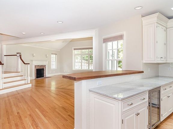 This young Dana Hall Colonial checks every item on your wish list! Set on beautiful, level grounds at the end of a cul de sac and is within walking distance to town, it has an excellent floor plan, tall ceilings, and fine details. The white kitchen has gorgeous stone counters, expansive center island, breakfast bar, high-quality appliances (including two refrigerators), and terrific butler's pantry. The family room is open and airy, with a fireplace and lots of windows, and views to the private yard. There is a spacious living room and an elegant dining room that's perfect for the holidays as well as a first-floor study. The second level has five generous ensuite bedrooms including a master with a sitting area, ample walk-in closets, and a luxury bath. There is a fully finished walk-out lower level with plenty of room for play, exercise, or media and has both kitchenette and another full bath. The three-car garage opens to a convenient mudroom. All this in such a coveted location!