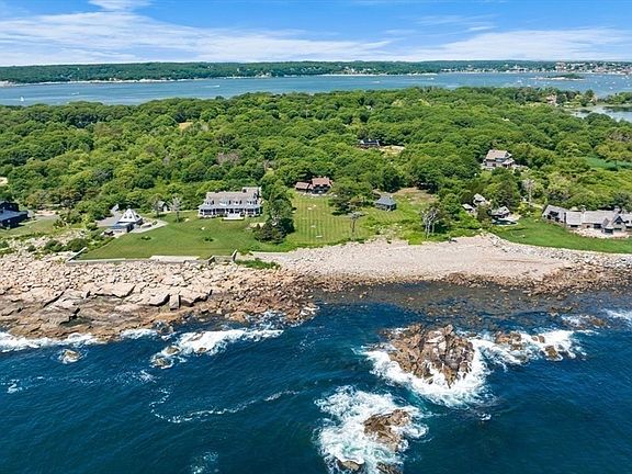 Exceptional waterfront offering on over 2 acres with 180 feet of frontage on the Atlantic Ocean in Gloucester’s coveted Eastern Point, The location is both stunning and serene and part of what remains of a large estate that’s been in the same family for more than a hundred years. It’s situated beyond open fields and off a quiet dead-end road that winds through light woodland and past a small orchard before the drive brings you to a secret place with mature trees and extensive lawns with endless views to the horizon and direct access to the rocky shore. The home is thoughtfully designed to take advantage of the views, with clean lines, loads of natural light, wide pine floors, and large wooden beams. Impeccably maintained, the home is the ideal weekend, seasonal or year-round retreat on the water in the most desirable section of Eastern Point.