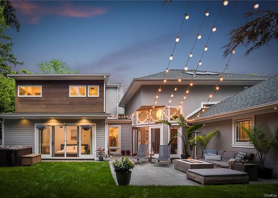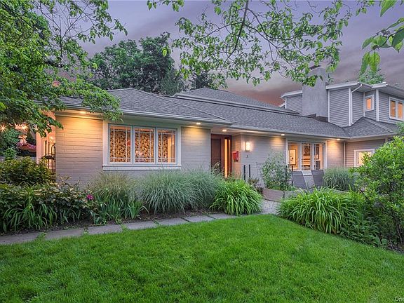 3 Dusenberry is a tastefully updated mid-century oasis set in Bronxville Village. This rare, light-filled, airy modern retreat is primarily one level living with great flow. The recently added second level offers an expansive primary bedroom suite with a sky-high cathedral ceiling and a wall of windows. The adjacent space easily accommodates a WFH office or baby's nursery. This private paradise is set amid lush and diverse mature plantings. A flat, fenced and grassy back yard offers 3 outdoor terraces plus hot tub for luxurious staycation days and entertaining. The expansive windows and glass doors bring the outdoors in all day long. Just down the street is Bronxville's largest dog park and a beautiful perennial garden to be enjoyed on walks. Please come and see for yourself!