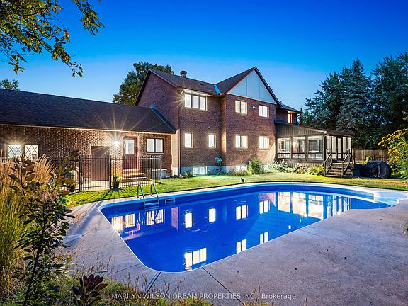 Set on nearly an acre of manicured grounds, 3 East Healey Avenue blends timeless architecture with modern upgrades, offering a lifestyle of ease and refinement just minutes from everyday conveniences. Stately stucco-clad dormers & rich brown brick façade anchors the home with a sense of permanence & strength.The backyard is designed for living well in every season. A sparkling inground pool, updated with a new liner &pump (2021)is the centerpiece of the outdoor retreat. Updated in 2024 the screened porch extends living space, ideal to take in the changing seasons & the composite deck for outdoor gatherings.Inside, the floor plan balances formality with function. The welcoming foyer with dual walk-in closets opens to the formal living & dining rooms both enhanced by large bay windows overlooking the front gardens. At the heart of the home, the kitchen with refreshed cabinetry, backsplash & open shelving flows into the family room, where a gas fireplace provides warmth & focus. Pot lights & updated fixtures lend a modern edge while maintaining a comfortable, inviting atmosphere. Everyday practicality with a main-floor laundry (laundry chute from the 2nd floor) full bath & side foyer providing direct access to the fenced dog run, extended height garage (with EV) & secondary stairwell leading to the lower level.The second floor continues with recent updates: new carpeting, lighting, & soft neutral paint. The primary suite offers a walk-in closet, ensuite and a flexible den/bed adjoins the suite-ideal for a nursery or home office. 3 additional bedrooms share the updated bathroom with heated floors.The lower level offers dedicated workshop, gym, cold cellar & cozy rec room makes the perfect spot for movie nights, plus generous storage space. Close to top-rated schools, easy access to major routes &within walking distance to coffee shops, the Stittsville library, & local amenities, this is an uncompromising opportunity in one of Stittsville's most established enclaves.
