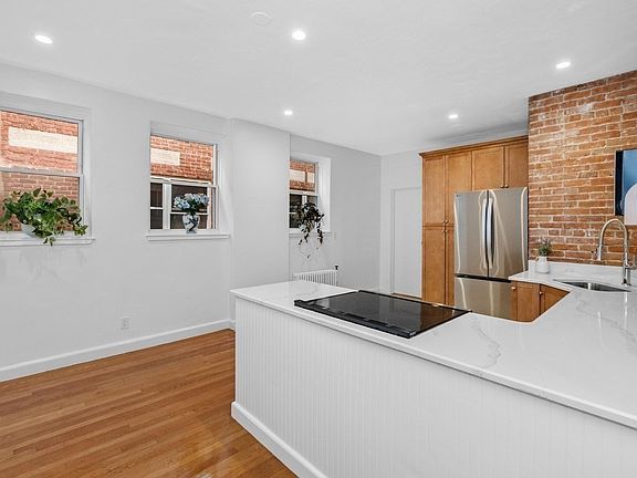Beautifully renovated 3rd-floor condo in prime Brookline! High ceilings, open layout, exposed brick, and just refinished oak hardwood floors. The modern eat-in kitchen shines with brand-new stainless-steel appliances, quartz countertops, and a striking quartz backsplash. Newly renovated bathroom with updated vanity and fixtures. Bright living and dining area with a spacious bedroom. Professionally managed building with heat and hot water included in low condo fee. Laundry on-site. Ideally located at Beacon & Englewood with easy access to the Green C Line, shops, restaurants, parks, playgrounds, Washington Square, Coolidge Corner, and Longwood Medical Area. Englewood T-stop right outside. First Open House November 15 & 16, 12:00 - 1:30 PM