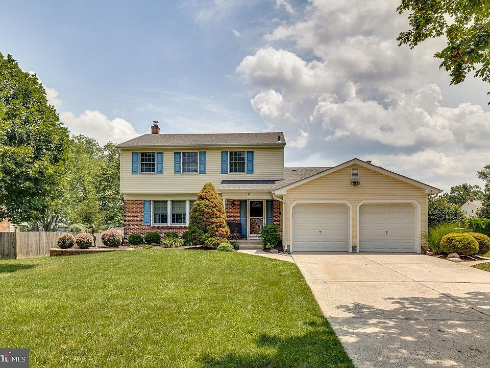 Don’t Miss This Gem in Highly Desirable Brush Hollow of Marlton! Welcome to this beautifully maintained 4-bedroom, 2.5-bath colonial located on a quiet cul-de-sac and situated on a generously sized lot. Step inside through the tiled foyer into a warm and inviting layout featuring a spacious living room and dining room with gleaming hardwood floors and elegant crown molding. The eat-in kitchen boasts granite countertops, wood cabinetry, and windows that provide a serene view of the backyard. Just a few steps down, you’ll find the cozy family room complete with a pantry and a charming brick fireplace with a gas insert —perfect for relaxing evenings. The main level also includes a convenient powder room, a spacious laundry room with ample shelving and storage, and interior access to the attached two-car garage. The garage is equipped with electric door openers and offers floored attic space for additional storage. Upstairs, you’ll find four generously sized bedrooms, including a primary suite with ample closet space and a private full bathroom. The hallway bathroom is also full-sized and features tasteful updates. Newer carpeting runs throughout most of the upper level. The full basement offers a versatile space ideal for an entertainment room, home office, playroom, or additional storage. Step outside into the backyard oasis with direct access from the family room. The large paver patio with unique brick accents includes an expansive eating area and a separate sitting space overlooking the lush rear yard. A spacious shed with paved access from the driveway to the rear patio adds both charm and functionality. Additional highlights include mostly Andersen windows, low-maintenance vinyl siding, sprinkler system, and a fantastic location that is close walking distance to schools with easy access to major roadways. This one won’t last—schedule your showing today!